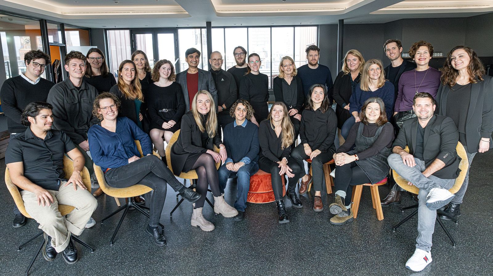Stehend v. l. n. r.: Ilia Sokolinskii, Alexander Kaminski, Stephanie Schaffarzyk, Natalia Valenzuela Paez, Christine Recke, Lara Gorißen, Kushal Jain, Sebastian Gerner, Lennard Joseph, Milena Merten, Anne von Rothkirch, Christian Supé, Anke Koch, Eva Herbe, Alexander Stirling, Cornelia Lütge, Ecesu Esmen (Monique Meinke, Anna McCoy, Eike Sabina Westernströer n. a.)