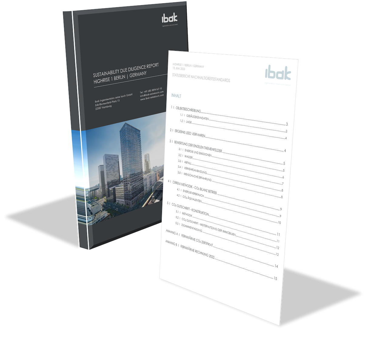 Das sog. ESG-Reporting legt die Auswirkungen der Geschäftstätigkeit auf Menschen und Umwelt dar. Die überprüfbaren Kriterien zu Umwelt, Soziales und Unternehmensführung zielen sowohl auf einzelne Gebäude als auch auf Portfolio sowie Unternehmensebene ab.