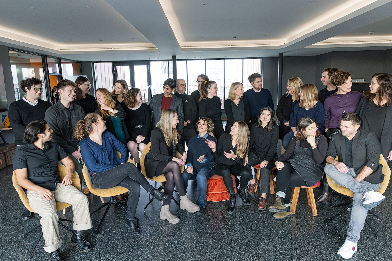 Stehend v. l. n. r.: Ilia Sokolinskii, Alexander Kaminski, Stephanie Schaffarzyk, Natalia Valenzuela Paez, Christine Recke, Lara Gorißen, Kushal Jain, Sebastian Gerner, Lennard Joseph, Milena Merten, Anne von Rothkirch, Christian Supé, Anke Koch, Eva Herbe, Alexander Stirling, Cornelia Lütge, Ecesu Esmen (Monique Meinke, Anna McCoy, Eike Sabina Westernströer n. a.)